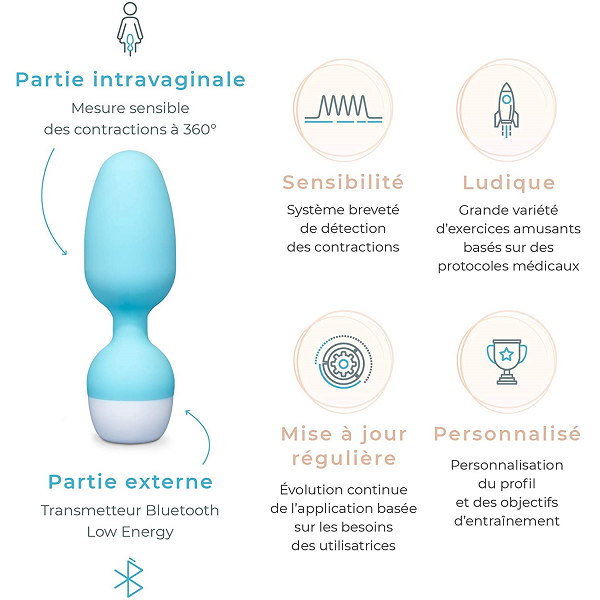Grâce à notre sonde connectée, la rééducation du périnée à domicile devient facile, ludique et efficace. EMY peut être utilisée en post-accouchement, pour lutter contre les fuites urinaires, éviter les descentes d'organes ou améliorer ses rapports intimes.