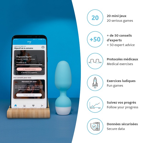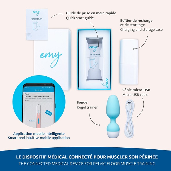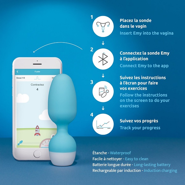 La sonde EMY est une solution efficace et complète pour la rééducation périnéale. C’est une sonde dotée de capteurs de pression associés à une application intelligente. Elle offre un panel d'exercices ciblant les paramètres importants d'un périnée en bonne santé. En la connectant à votre Smartphone, et en utilisant l'application, vous aurez accès à des données personnelles et précises sur votre parcours de rééducation.