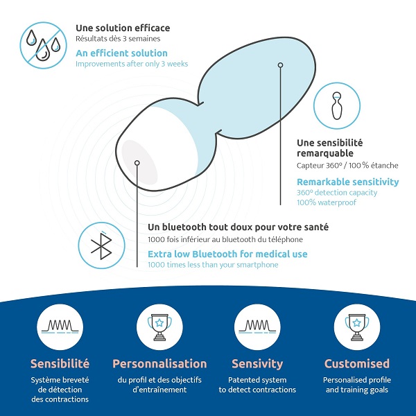 La technologie innovante et brevetée d’EMY permet une mesure sensible, précise et reproductible de la contraction des différents muscles du périnée selon la méthode du biofeedback.